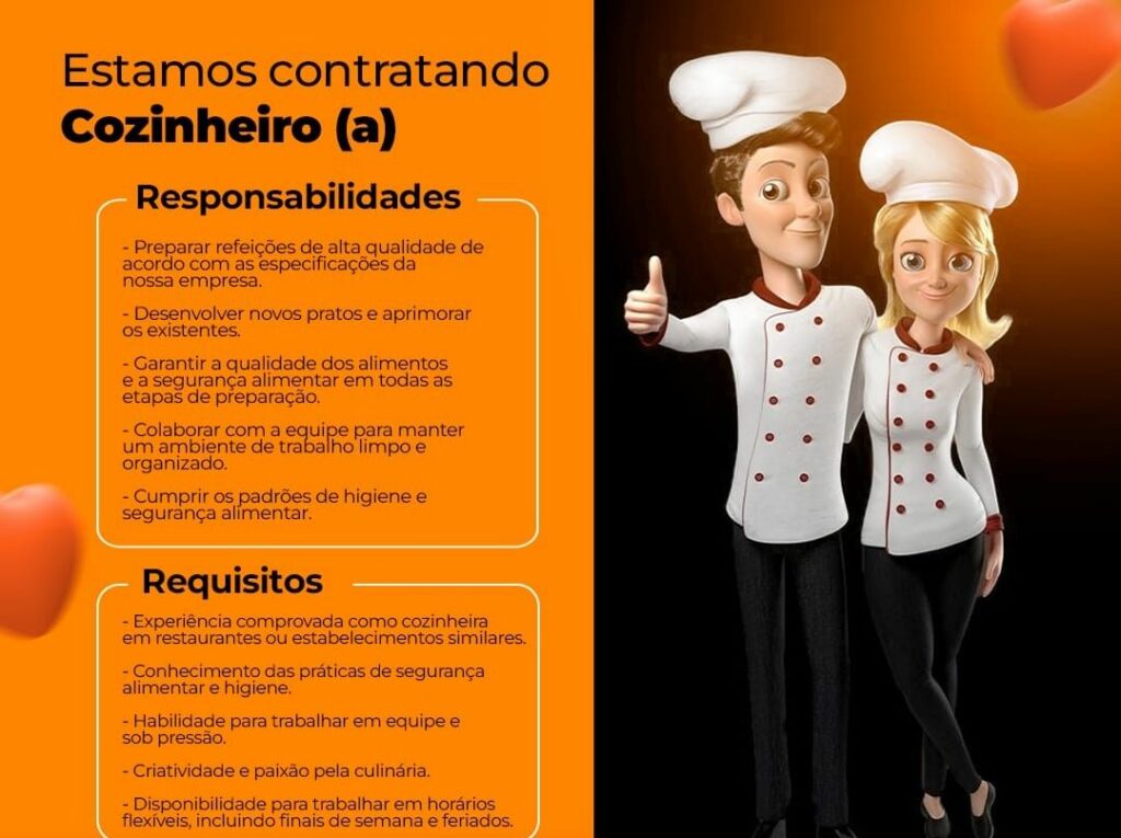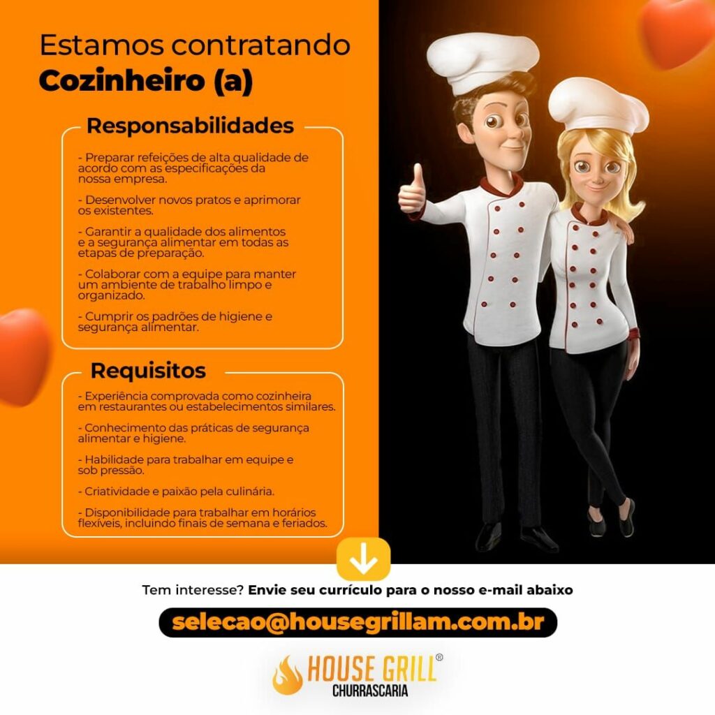 Empresa está selecionando Cozinheiro (a); Envie seu currículo!