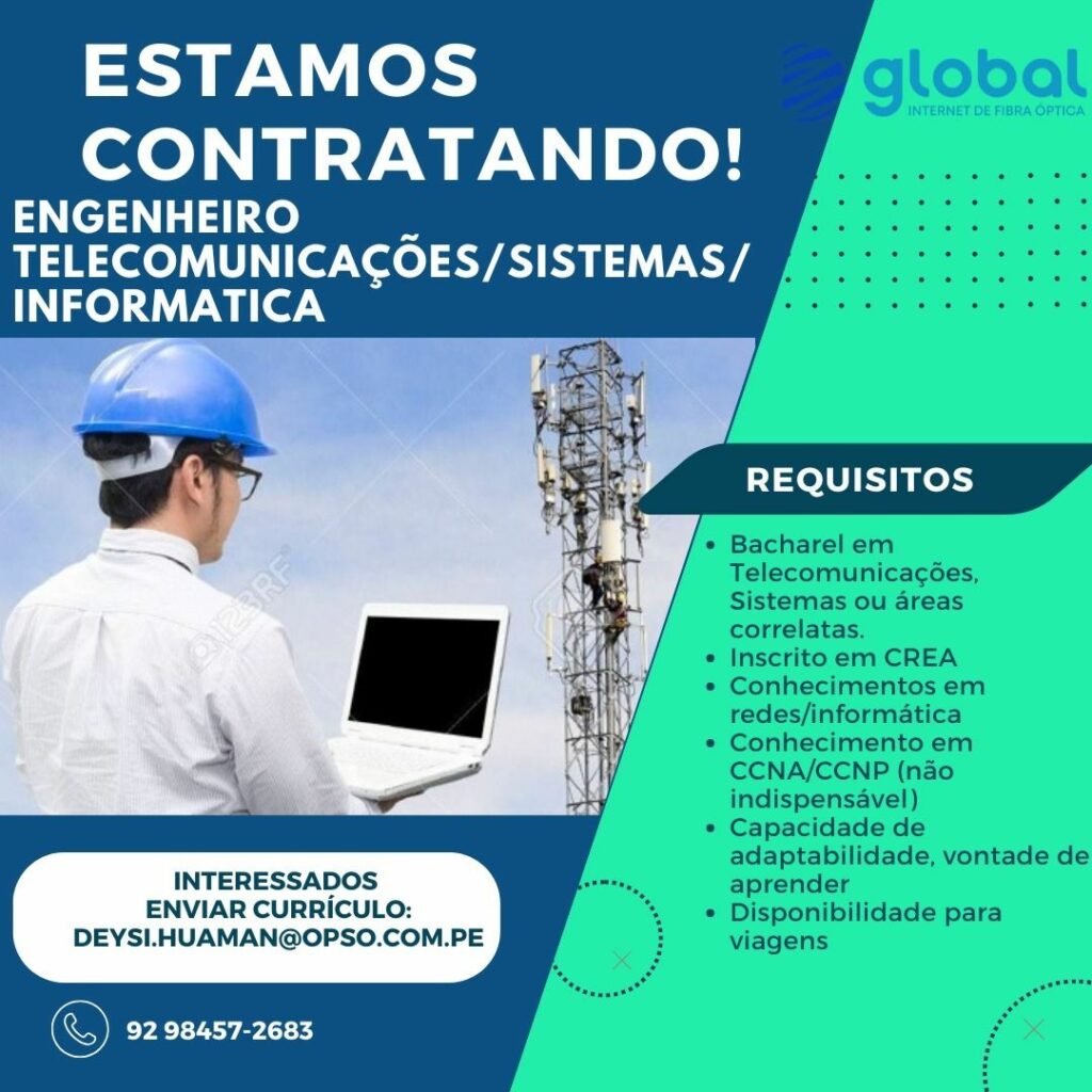 Empresa está selecionando Engenheiro Telecomunicações sistemas informática; Envie seu currículo!