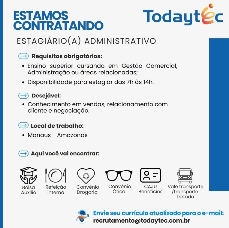 Empresa está selecionando Estagiário (a) administrativo; Envie seu currículo!