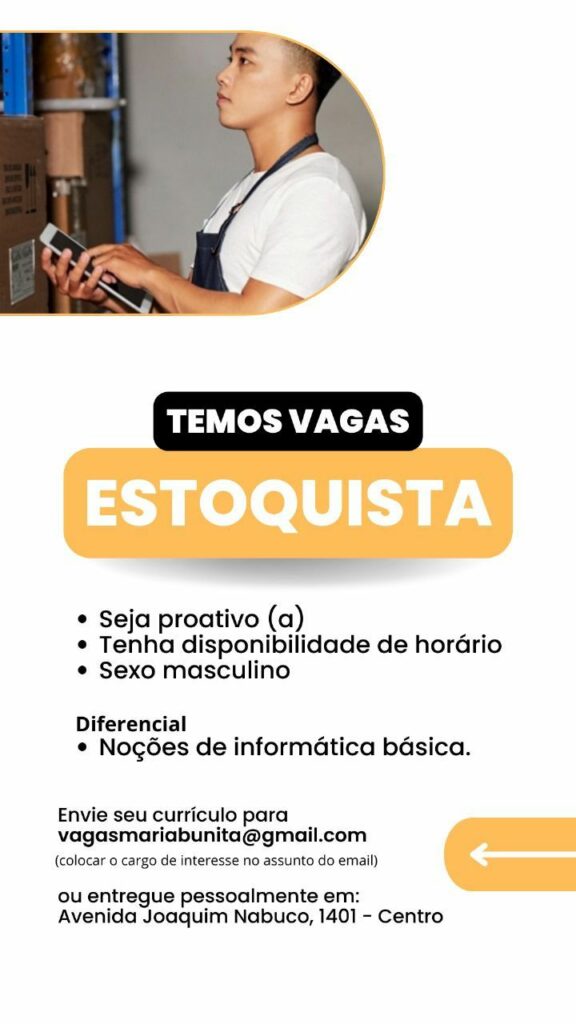 Empresa está selecionando Estoquista; Envie seu currículo!