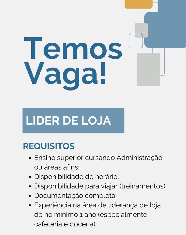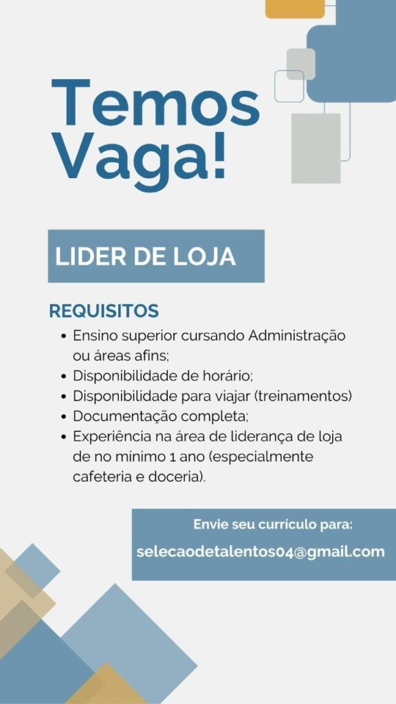 Empresa está selecionando Líder de loja; Envie seu currículo!