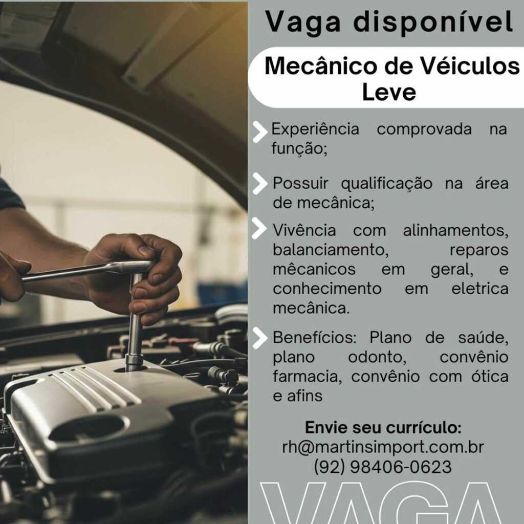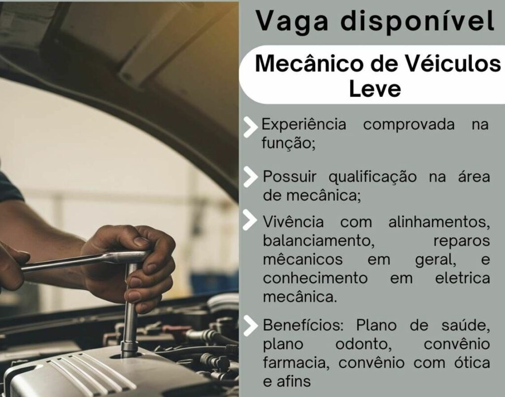 Empresa está selecionando Mecânico de veículos leve; Envie seu currículo!
