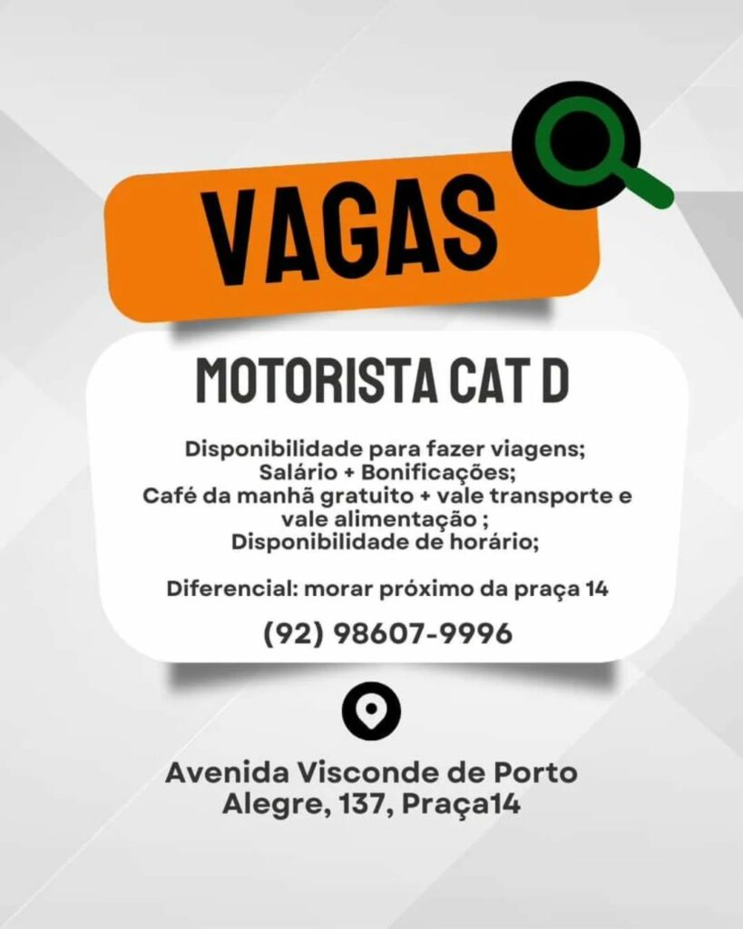 Empresa está selecionando Motorista D; Envie seu currículo!