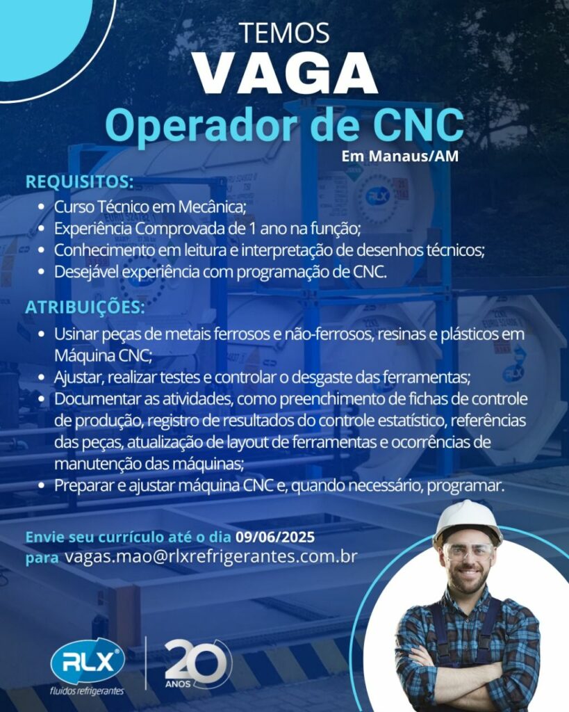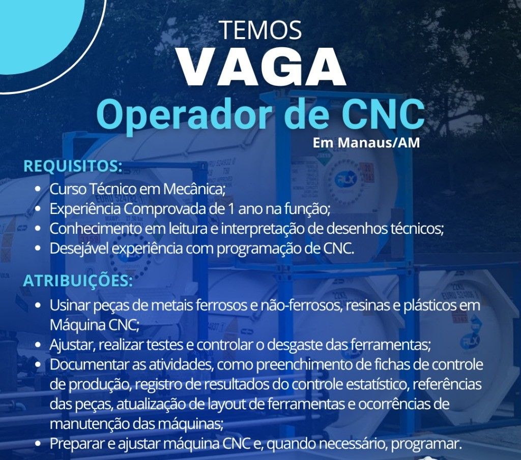 Empresa está selecionando Operador de cnc; Envie seu currículo!