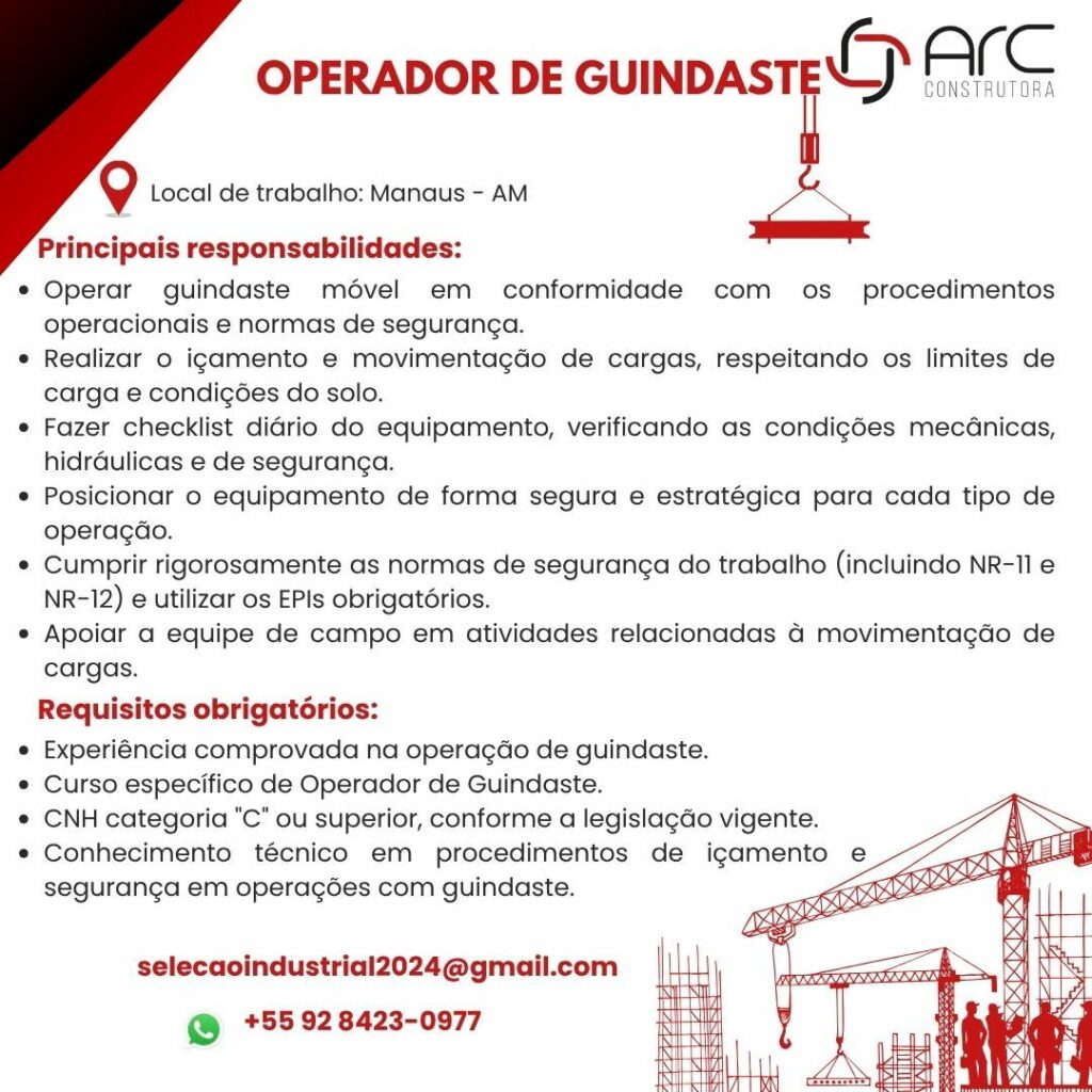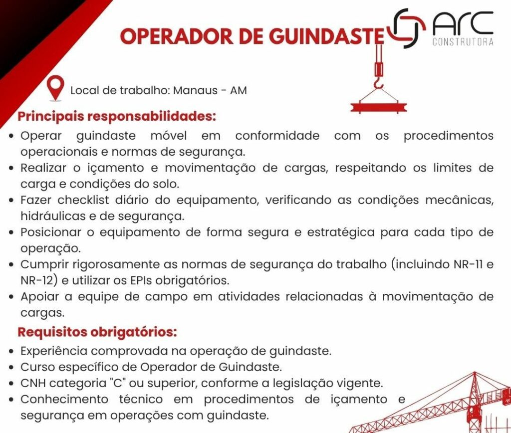 Empresa está selecionando Operador de guindaste; Envie seu currículo!