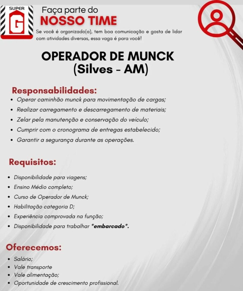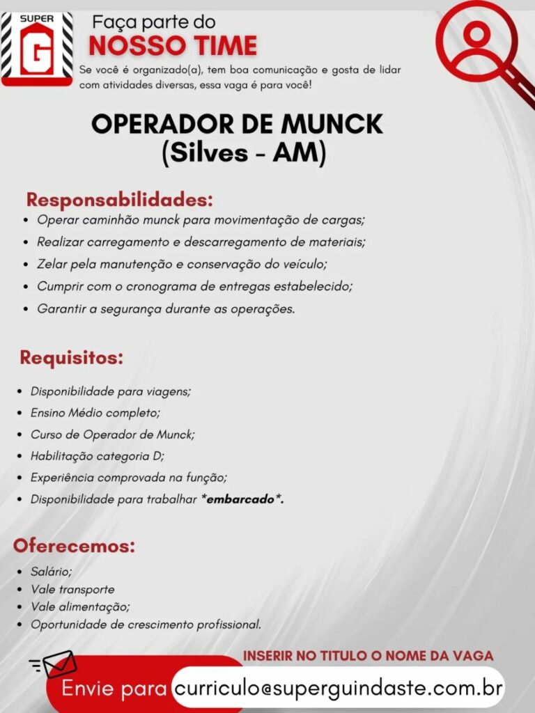Empresa está selecionando Operador de munck; Envie seu currículo!
