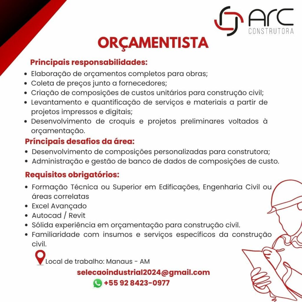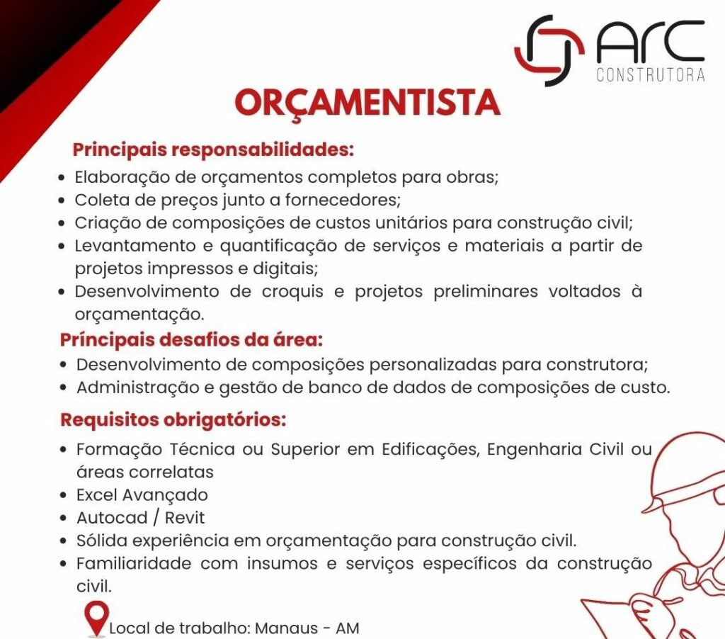Empresa está selecionando Orçamentista; Envie seu currículo!