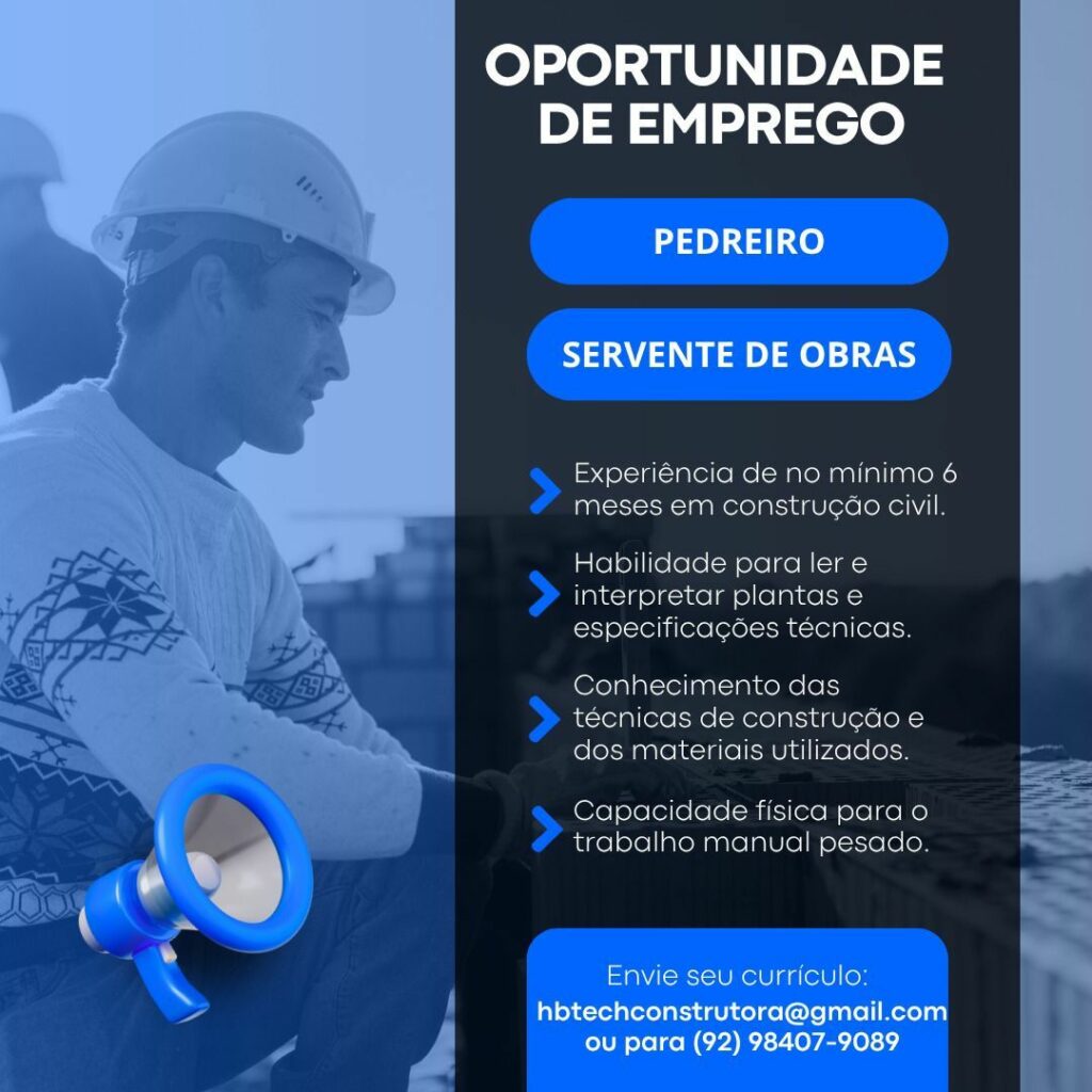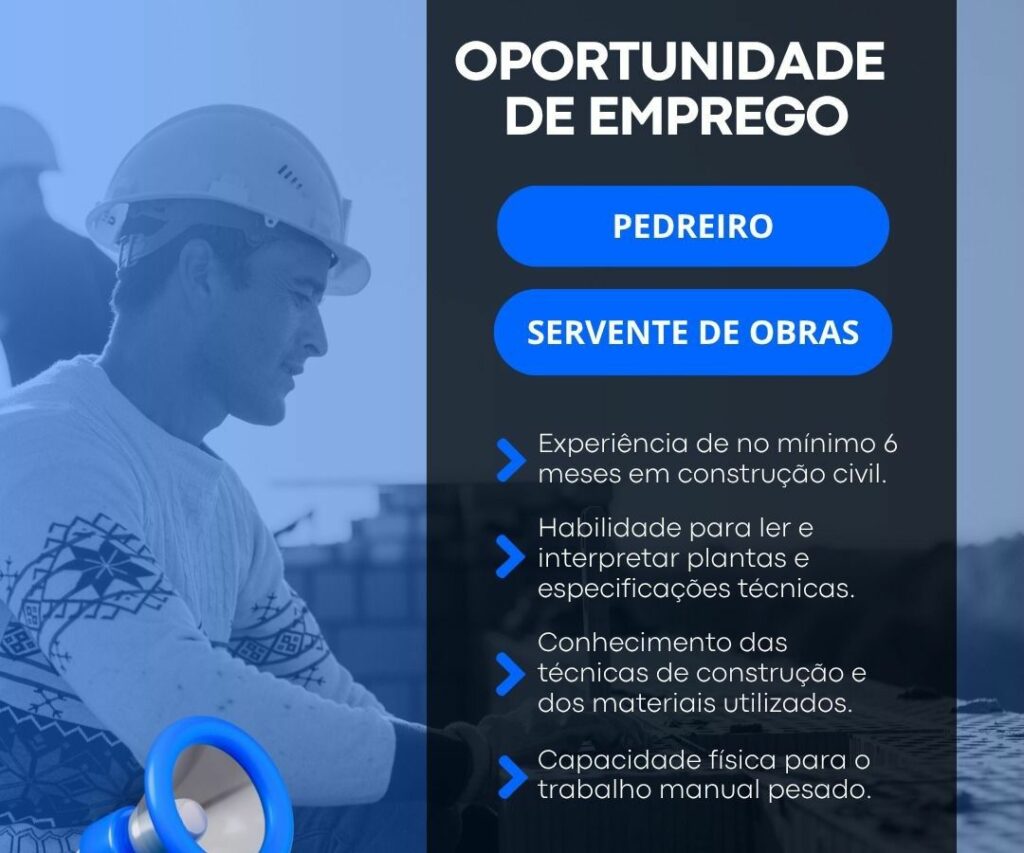 Empresa está selecionando Pedreiro, Servente de obras; Envie seu currículo!