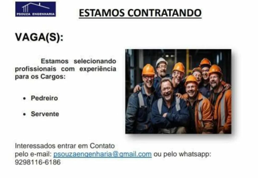 Empresa está selecionando Pedreiro, Servente; Envie seu currículo!