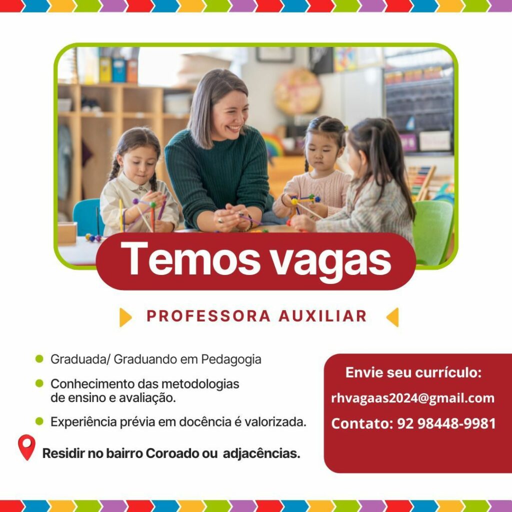 Empresa está selecionando Professora Auxiliar; Envie seu currículo!