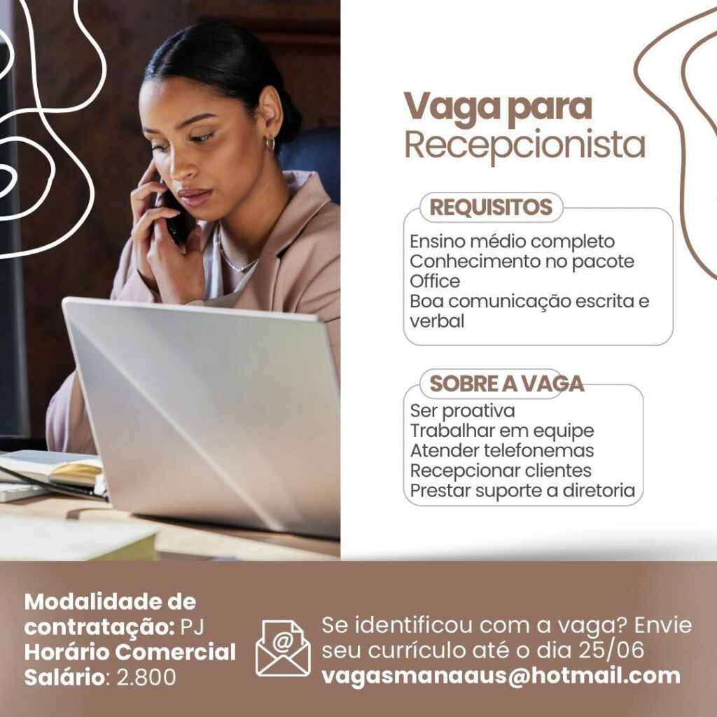 Empresa está selecionando Recepcionista; Envie seu currículo!