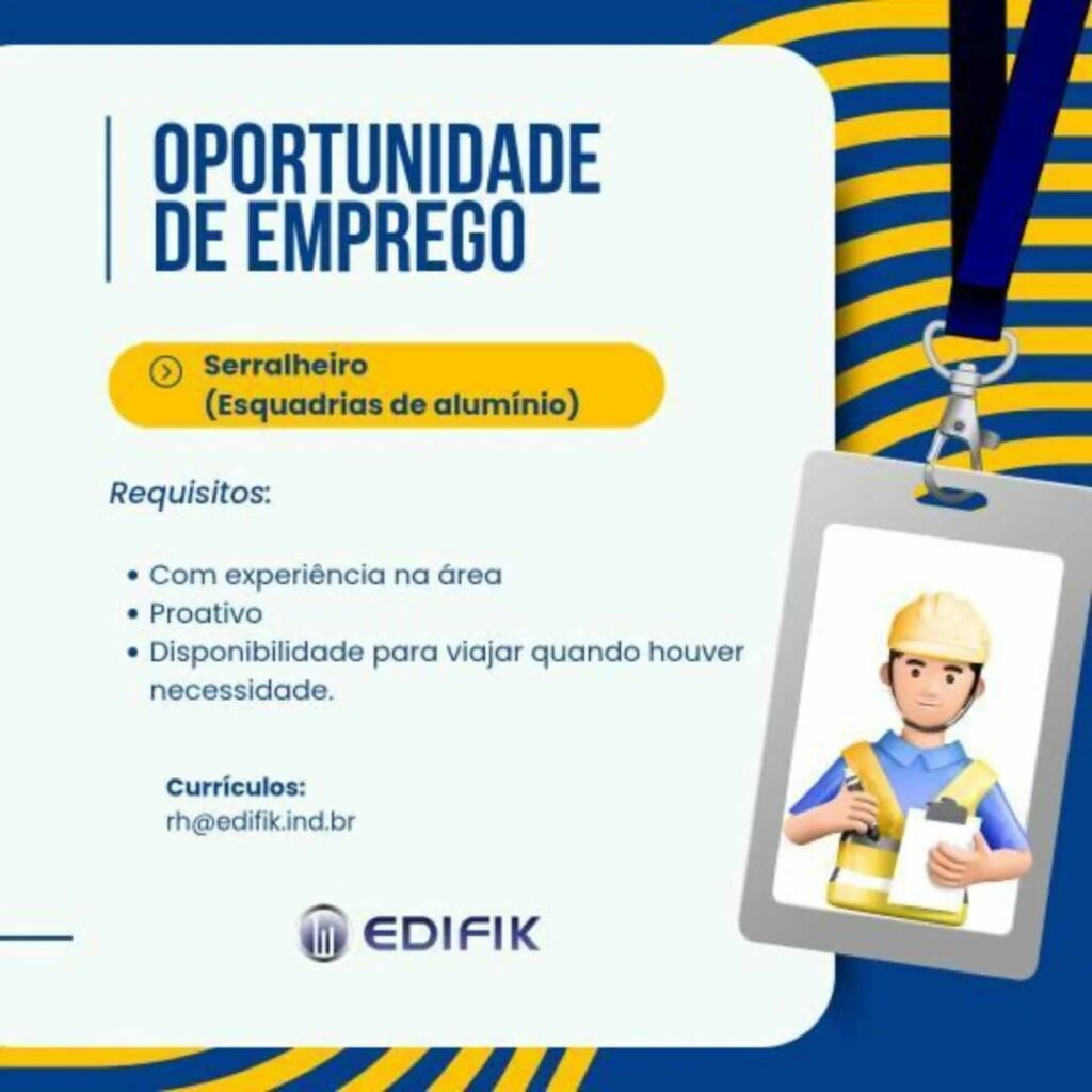 Empresa está selecionando Serralheiro; Envie seu currículo!