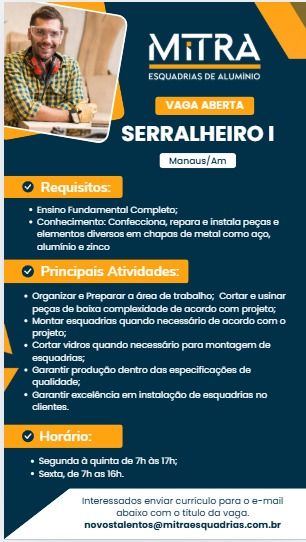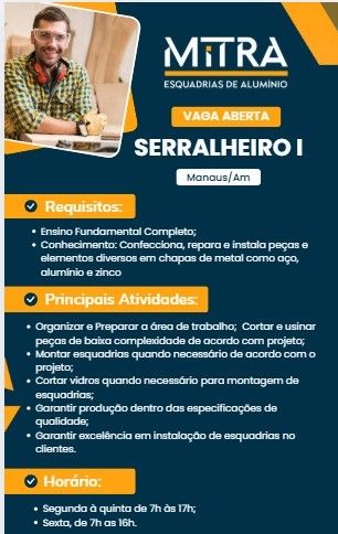 Empresa está selecionando Serralheiro l; Envie seu currículo!