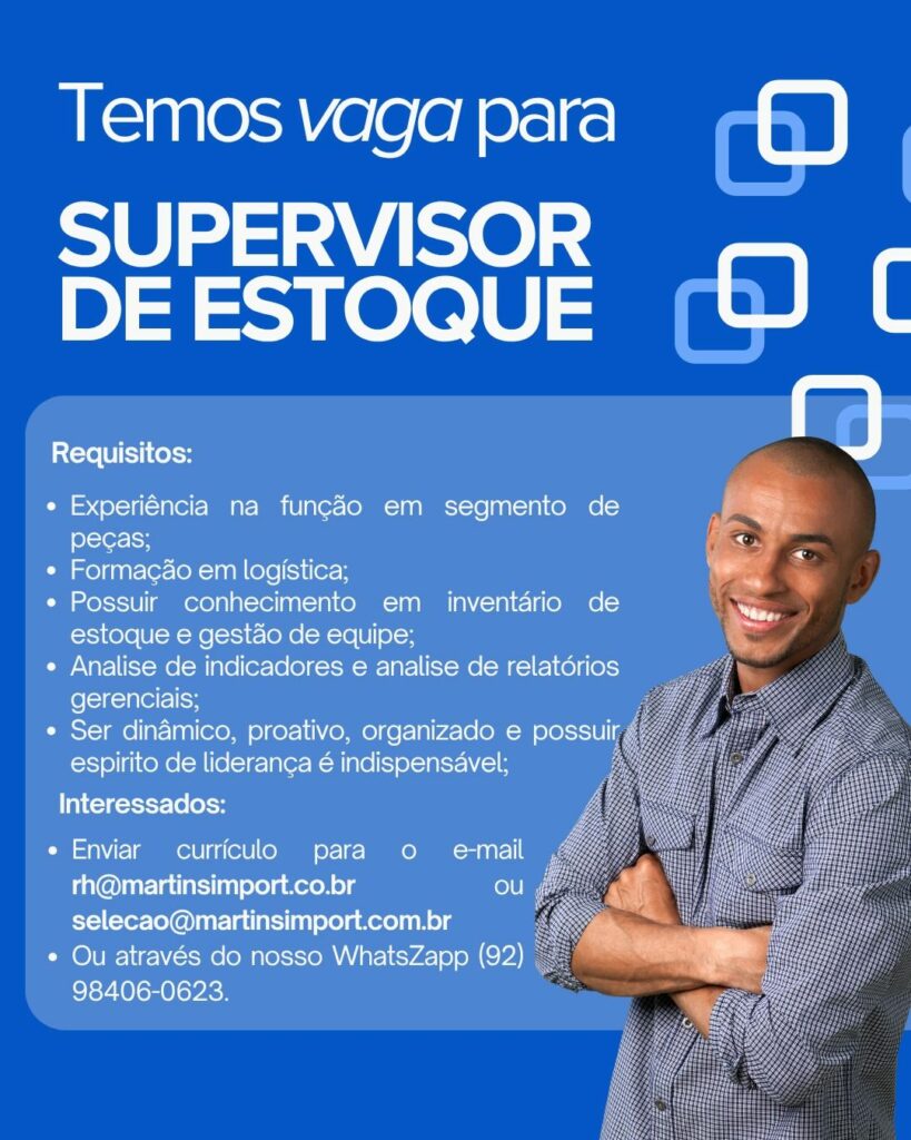 Empresa está selecionando Supervisor de estoque; Envie seu currículo!