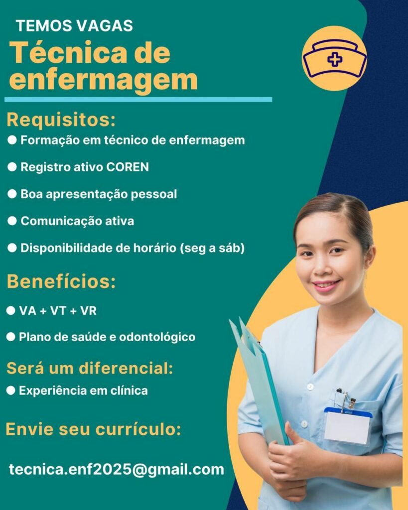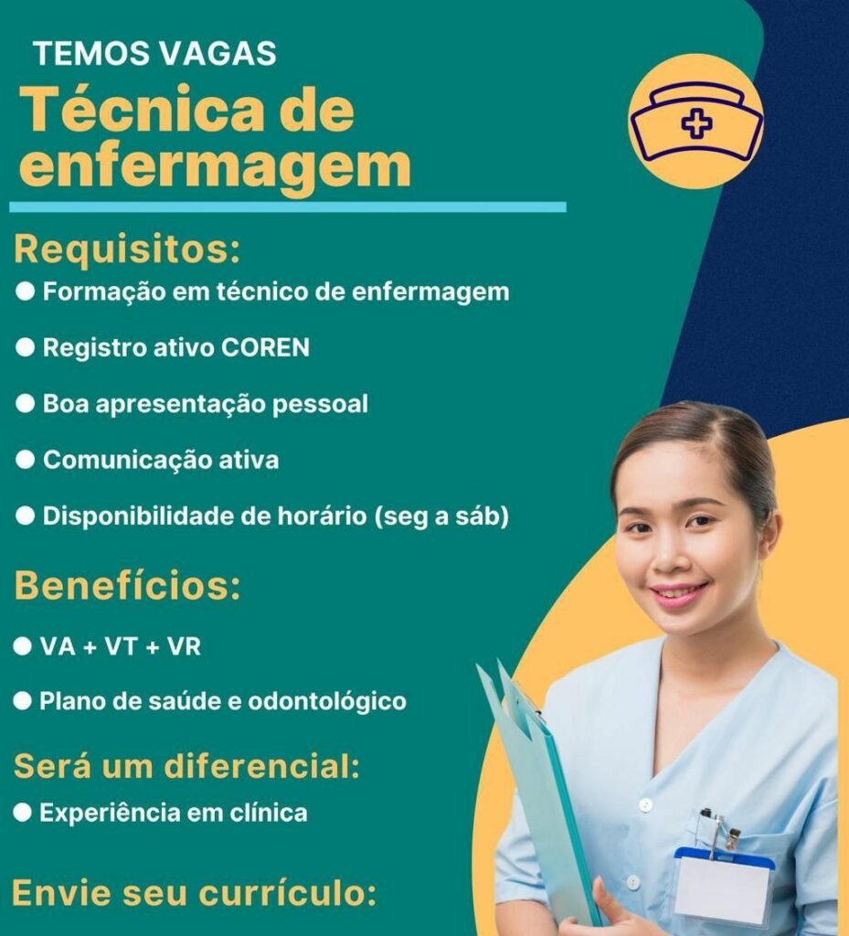 Empresa está selecionando Técnica de enfermagem; Envie seu currículo!