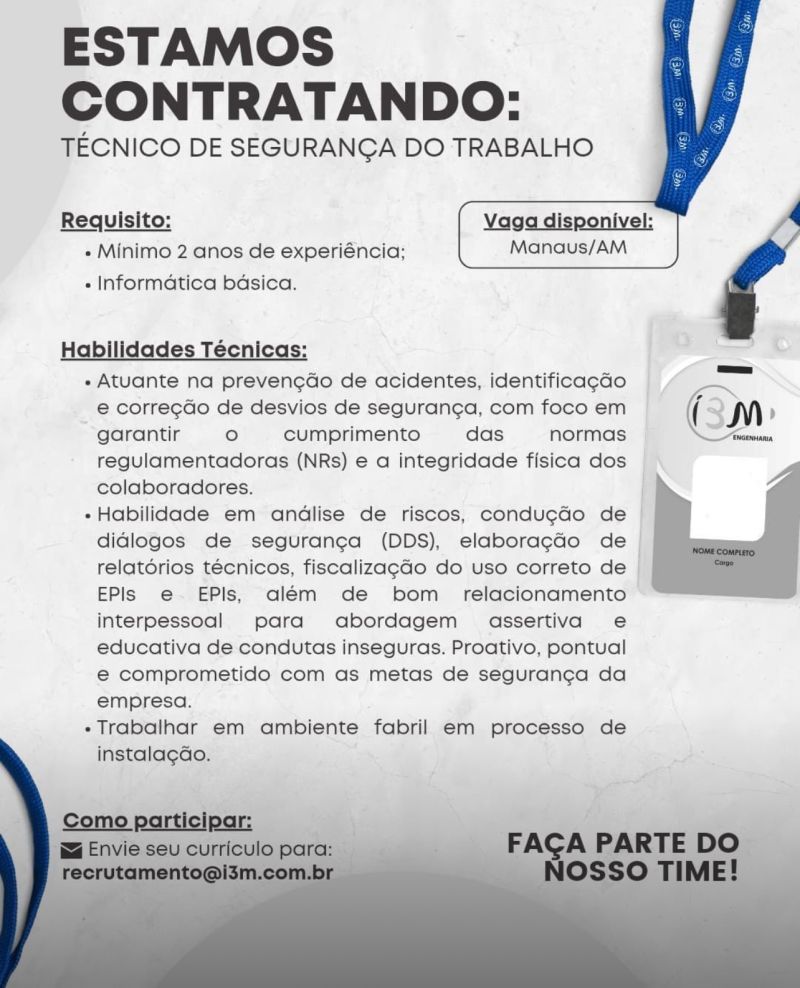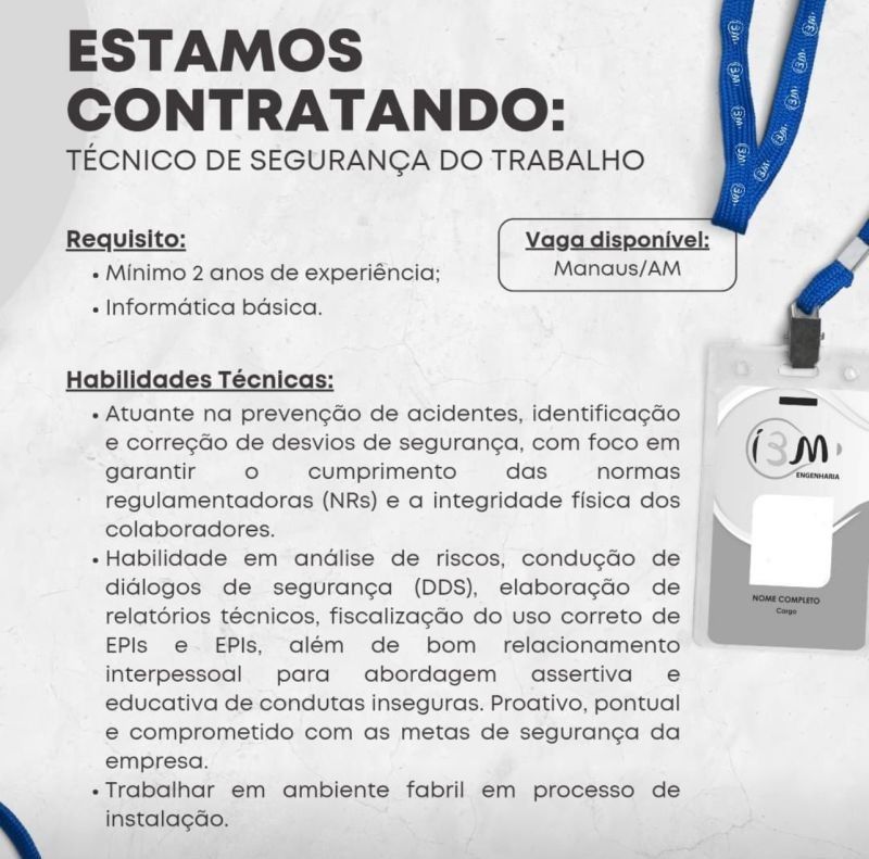 Empresa está selecionando Técnico de segurança do trabalho; Envie seu currículo!