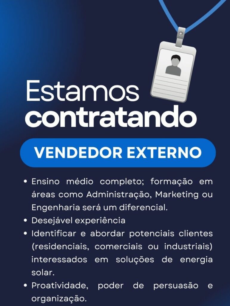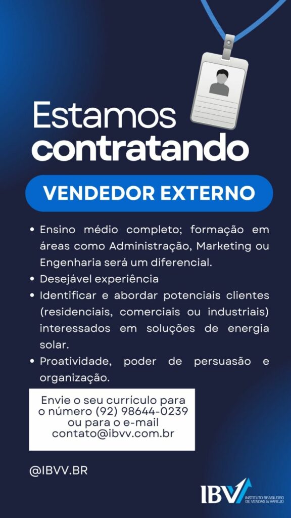 Empresa está selecionando Vendedor externo, Estagiários (as); Envie seu currículo!