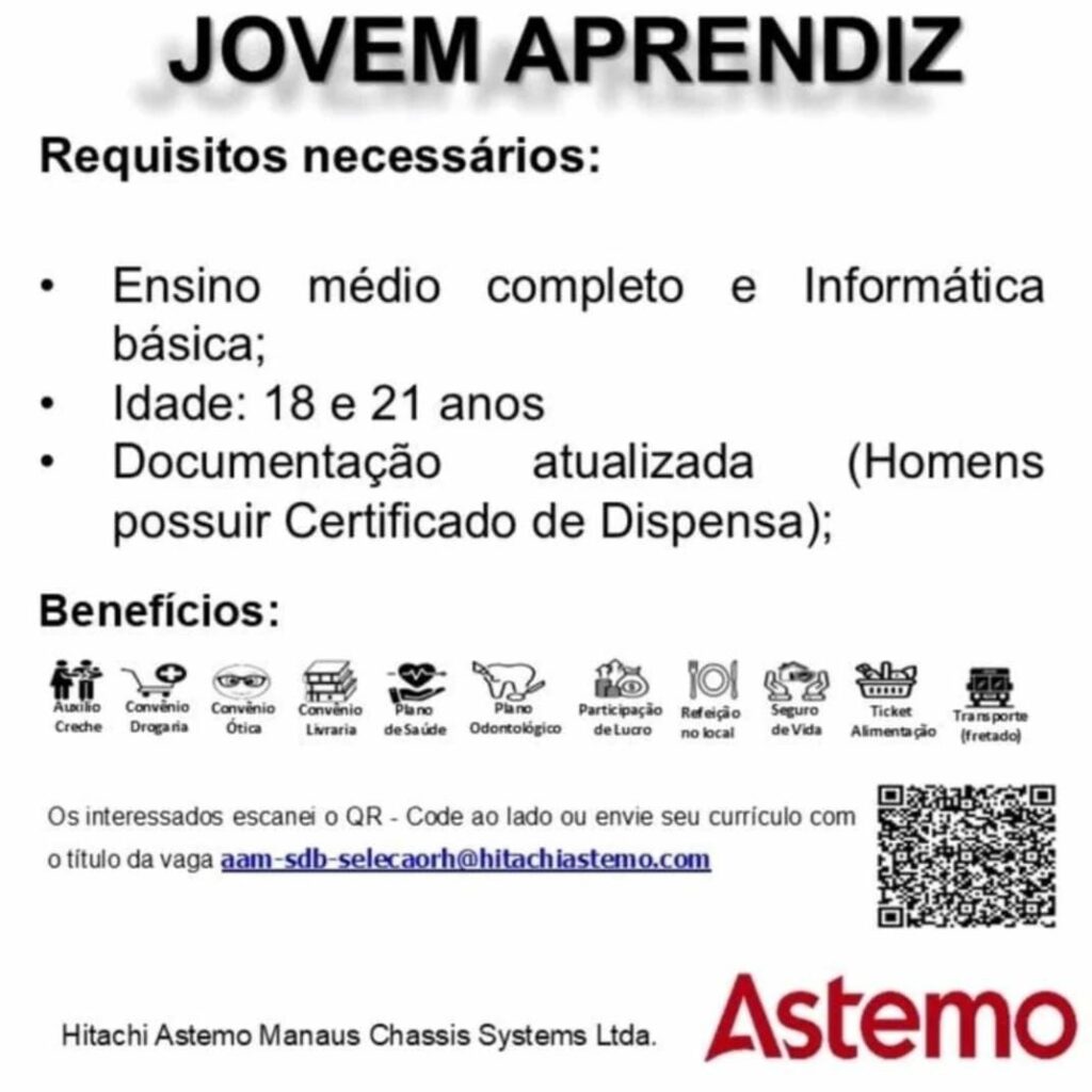 • Auxiliar de Produção e Jovem Aprendiz para Trabalhar na Honda da Amazônia