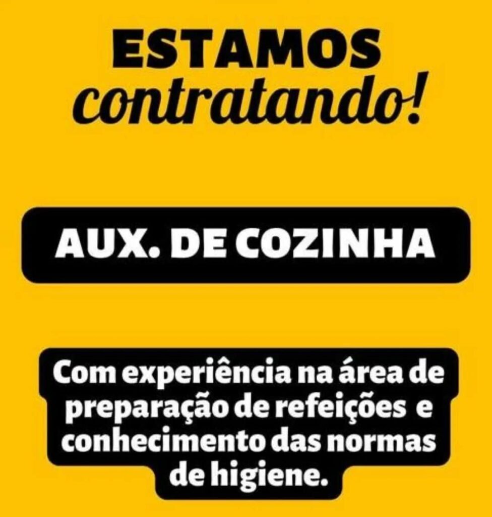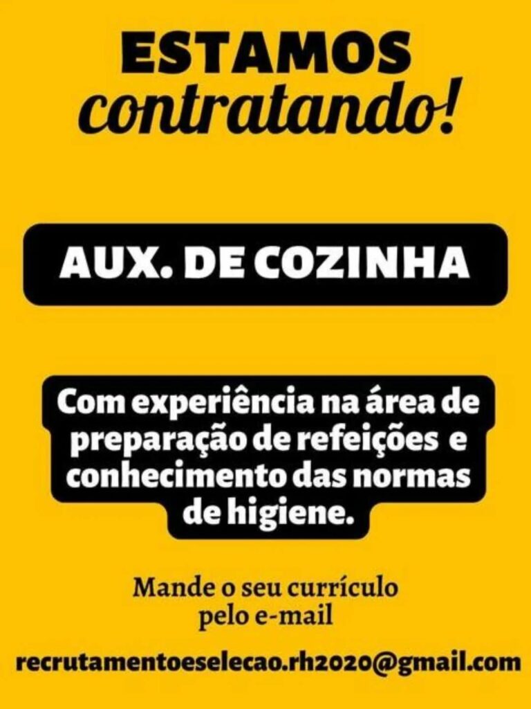 Empresa seleciona Auxiliar de cozinha; Envie seu currículo!