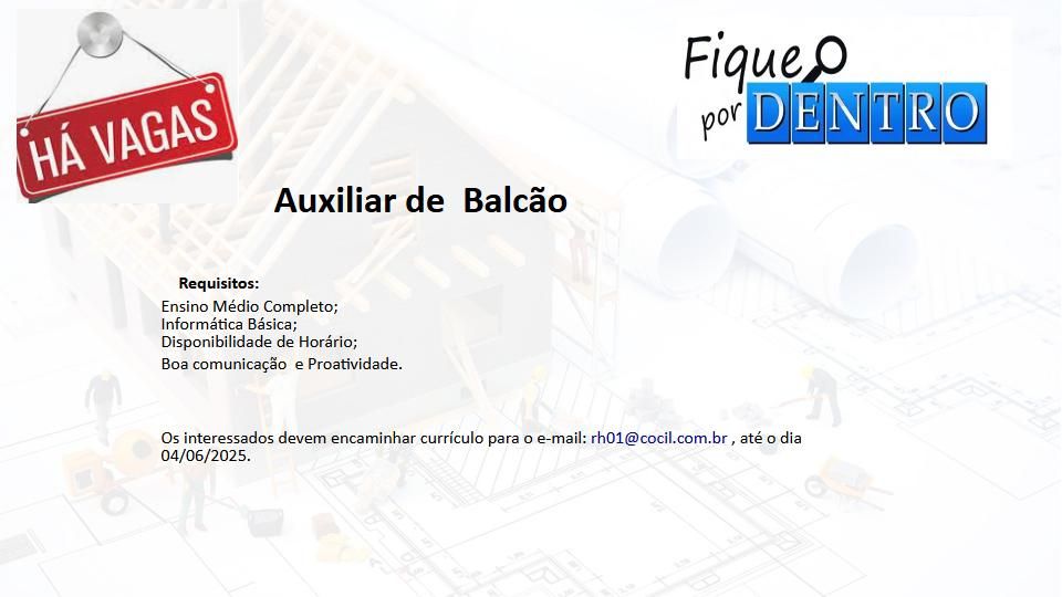 Empresa seleciona para vaga de Auxiliar de balcão; Envie seu currículo!