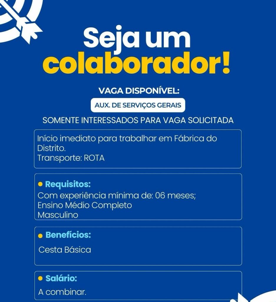 Empresa seleciona para vaga de Auxiliar de serviços gerais; Envie seu currículo!