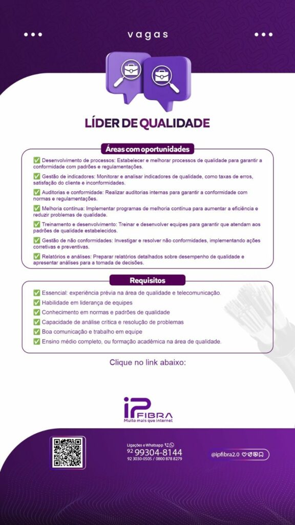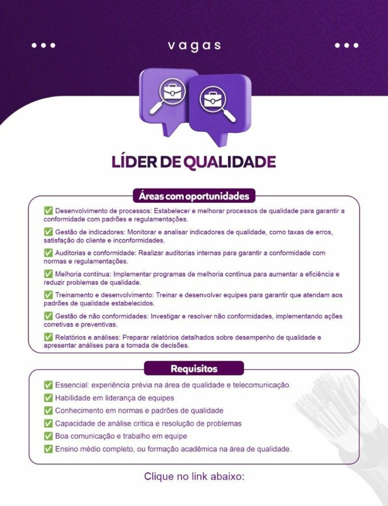 Empresa seleciona para vaga de Líder de qualidade; Envie seu currículo!