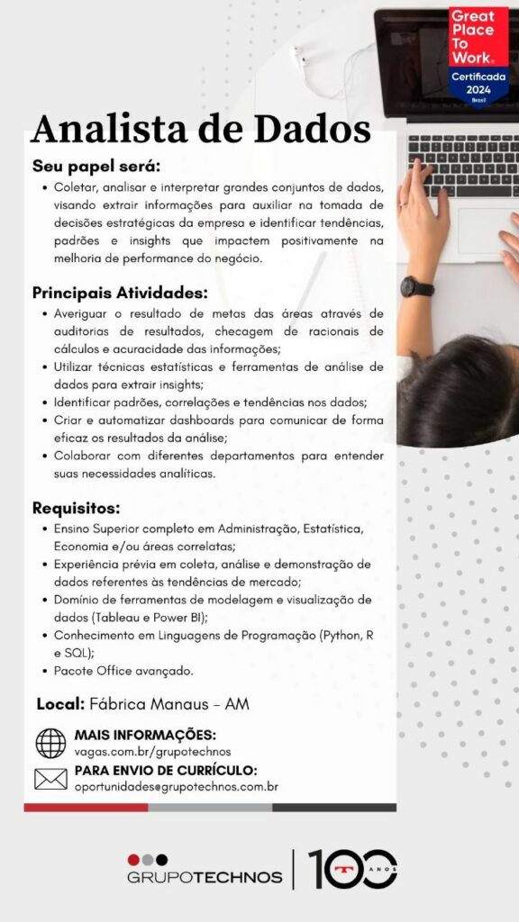 O processo seletivo para esta(s) vaga(s) não cobra absolutamente nada pela sua candidatura. Portanto, jamais aceite qualquer tipo de cobrança para cadastrar seu currículo.