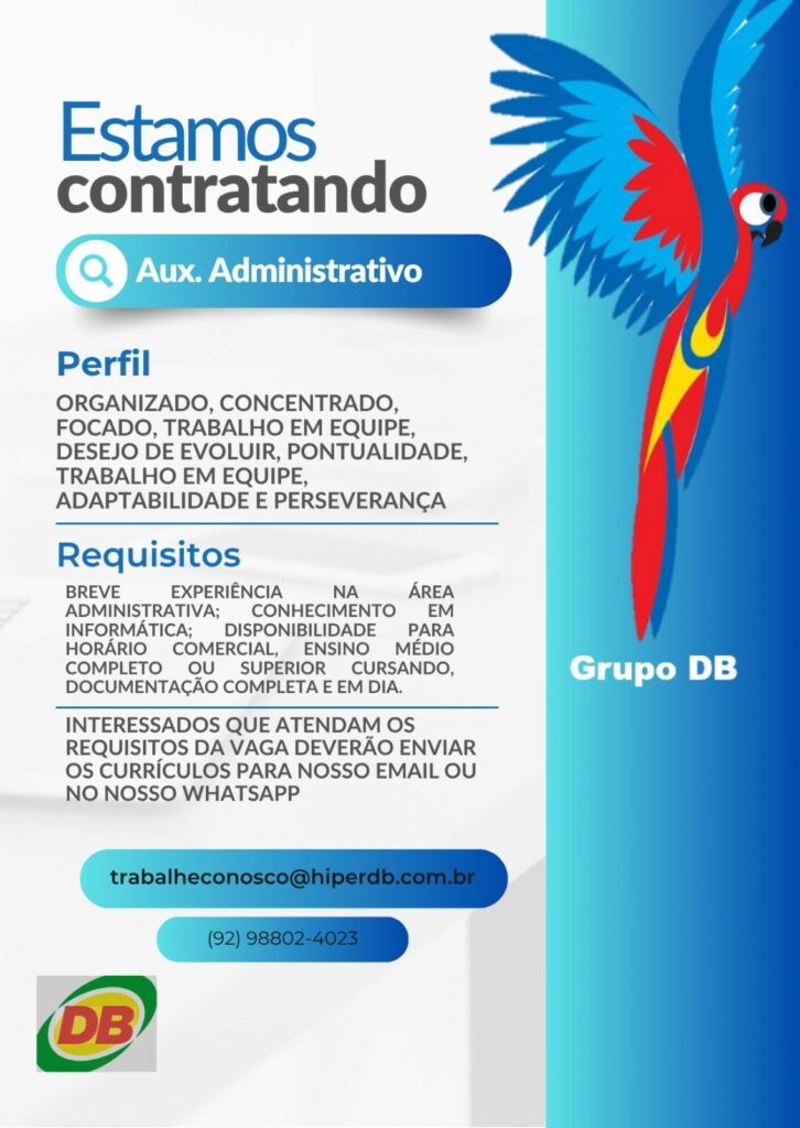 Grupo DB está selecionando Auxiliar administrativo; Envie seu currículo!