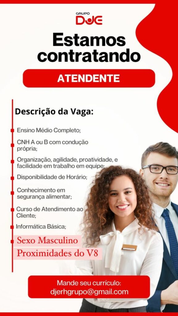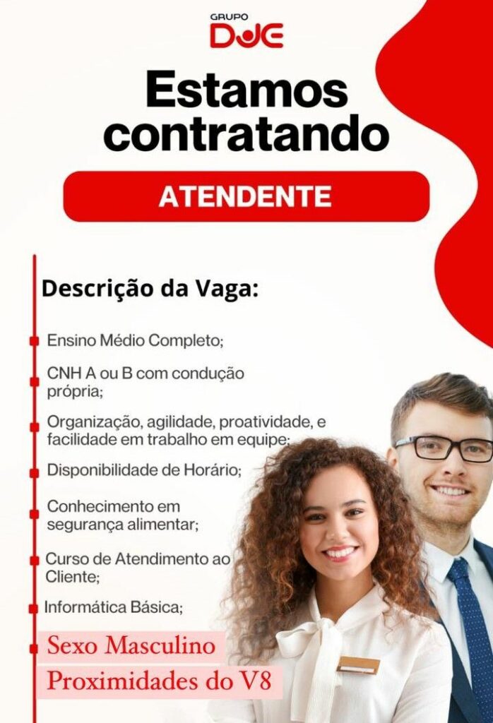 Grupo DJE seleciona Atendente; Envie seu currículo!