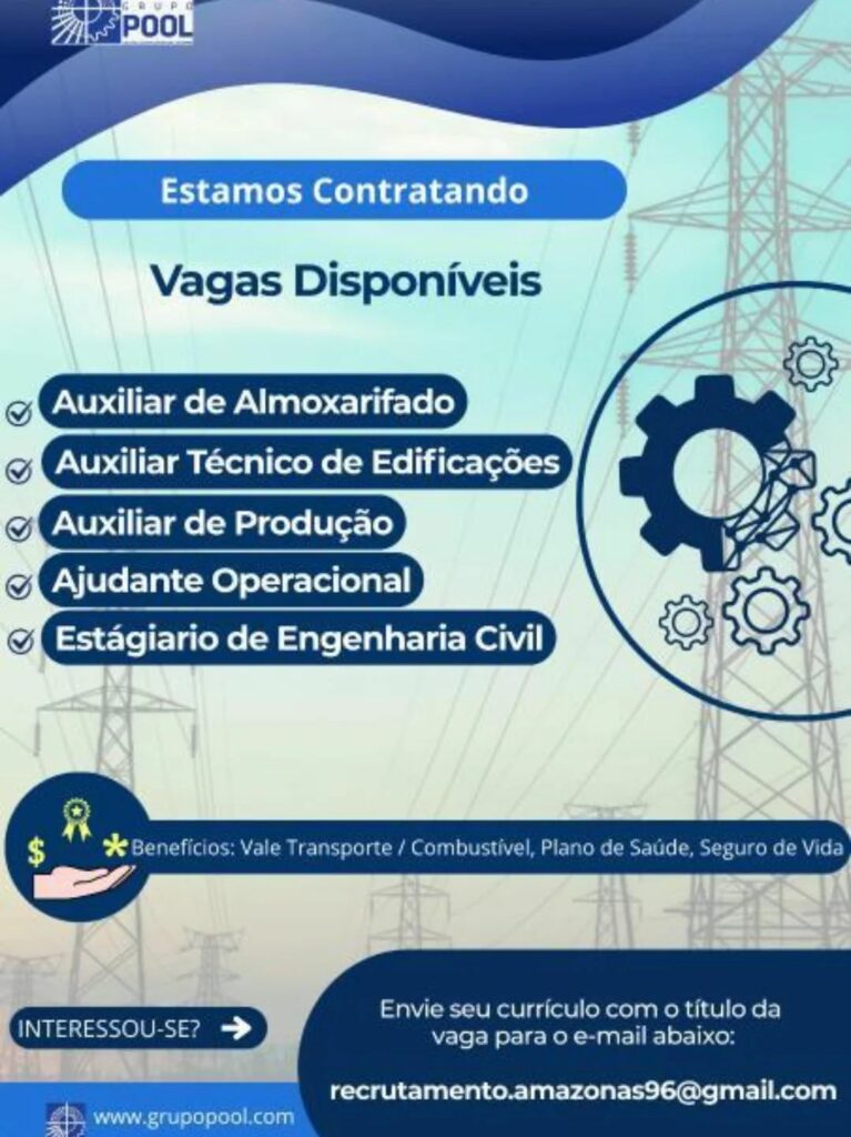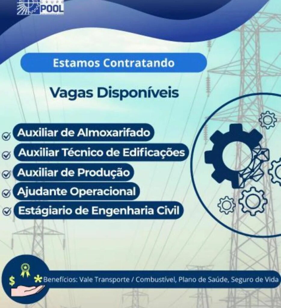 Grupo Pool seleciona Auxiliar de almoxarifado, Auxiliar técnico de edificações, Auxiliar de Produção, Ajudante operacional, Estagiário de Engenharia civil; Envie seu currículo!