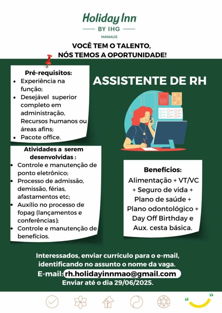 Hotel Holiday Inn Hotel seleciona Auxiliar de rh; Envie seu currículo!