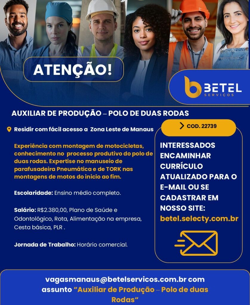 Indústria do polo de duas rodas seleciona Auxiliar de produção, Auxiliar de almoxarifado; Envie seu currículo!