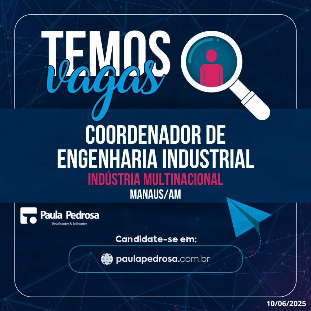 Indústria multinacional seleciona Coordenador de engenharia industrial; Envie seu currículo!