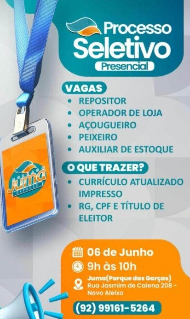 Juma Express seleciona Repositor, Operador de loja, Açougueiro, Peixeiro, Auxiliar de estoque; Envie seu currículo!