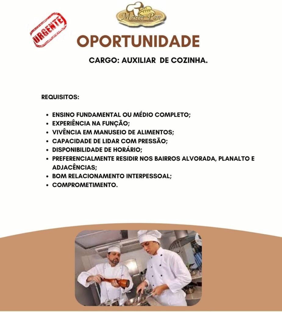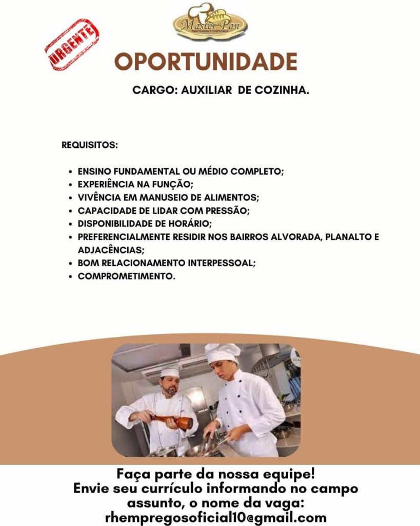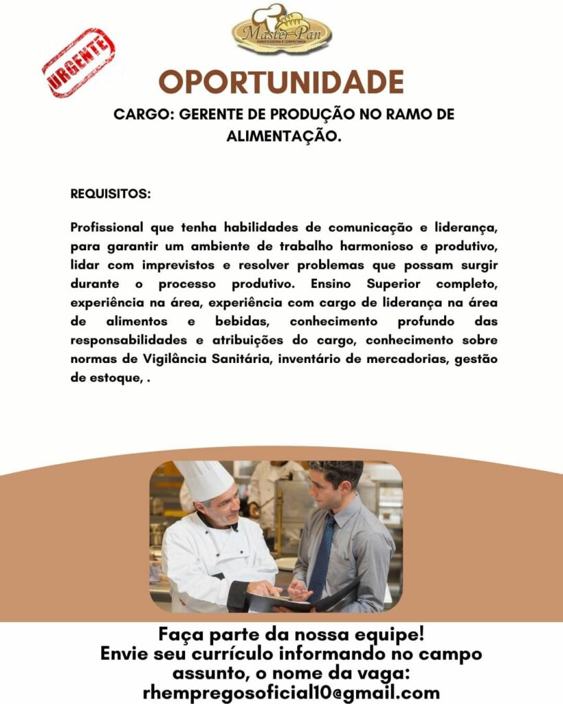 Master Pan está selecionando Auxiliar de cozinha, Gerente de produção; Envie seu currículo!