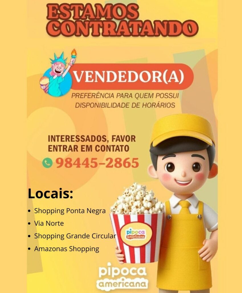 Pipoca Americana está selecionando Vendedor (a); Envie seu currículo!