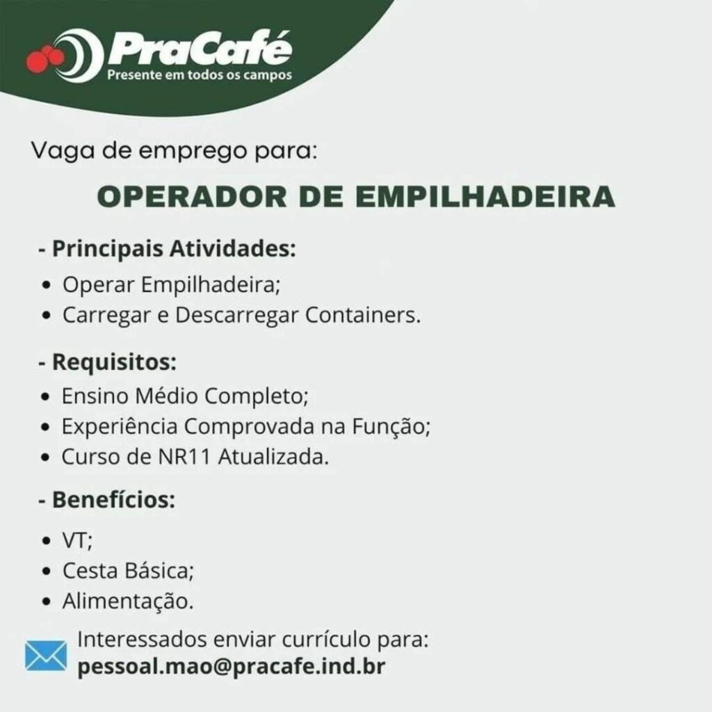 Pra café está selecionando Auxiliar de produção, Operador de empilhadeira; Envie seu currículo!
