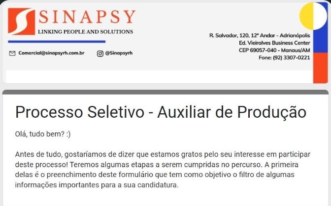 Nunca pague qualquer quantia para participar de um processo para que seja selecionado. Não compre nenhum curso, apostilas ou serviços que prometem participação na seleção ou contratação de uma vaga. E nunca insira dados bancários, cartões ou envie documentos por e-mail ou através de sites que não reconhecem. Não nos responsabilizamos por nenhum tipo de pagamento efetuado.