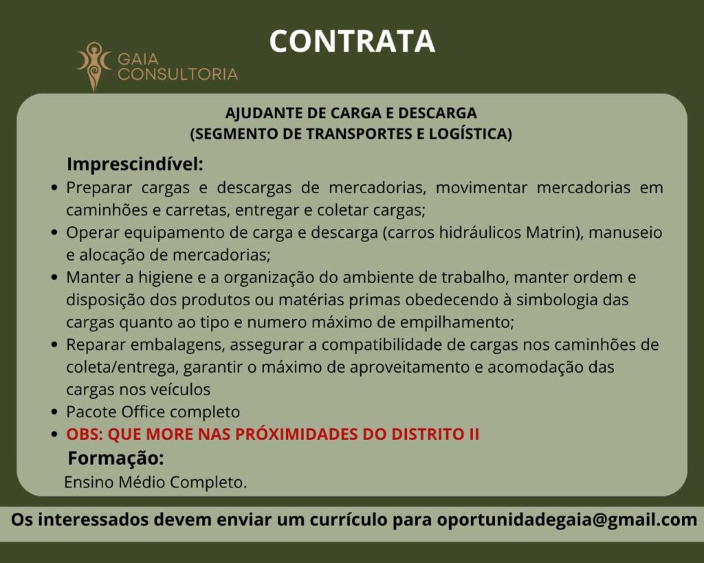Rh está selecionando Ajudante de carga e descarga; Envie seu currículo!
