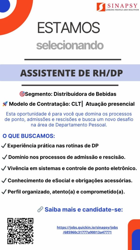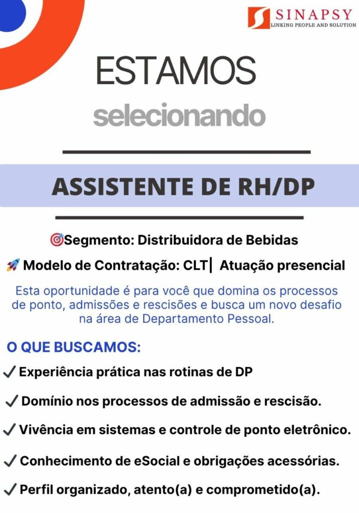 Rh está selecionando Assistente de rh / dp; Envie seu currículo!