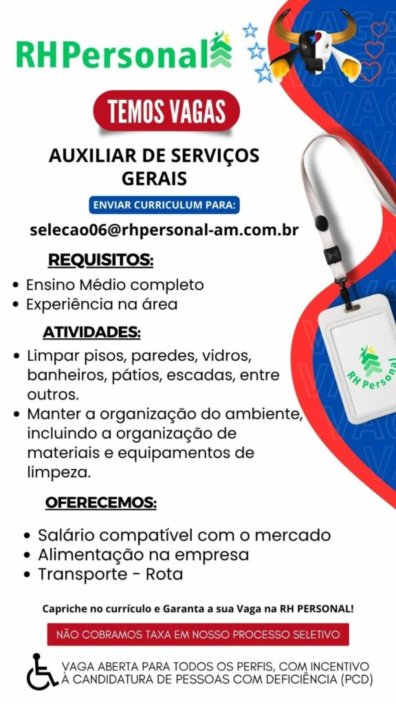 Rh está selecionando Auxiliar de estoque, Auxiliar de Manuntenção, Serralheiro, Auxiliar de serviços gerais; Envie seu currículo!