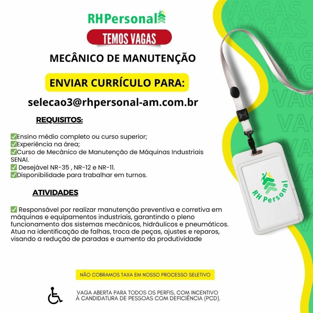 Rh está selecionando Auxiliar de expedição, Mecânico de Manuntenção; Envie seu currículo!