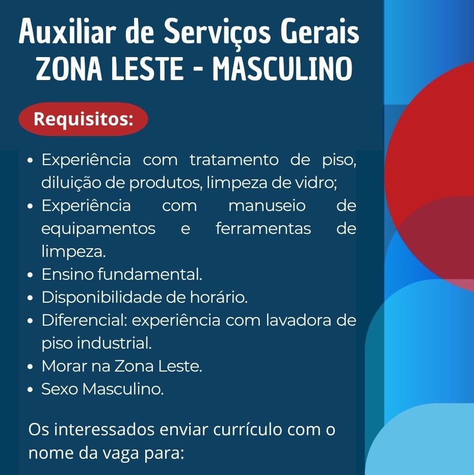Rh está selecionando Auxiliar de serviços gerais; Envie seu currículo!