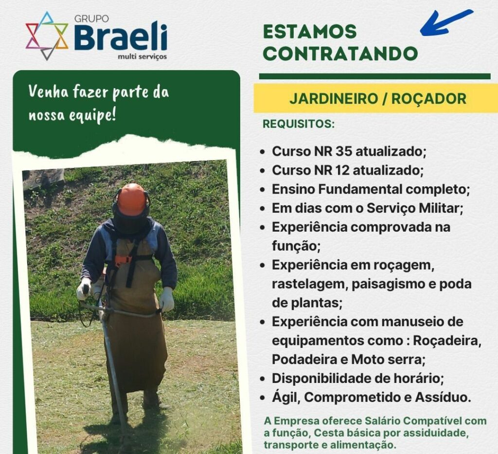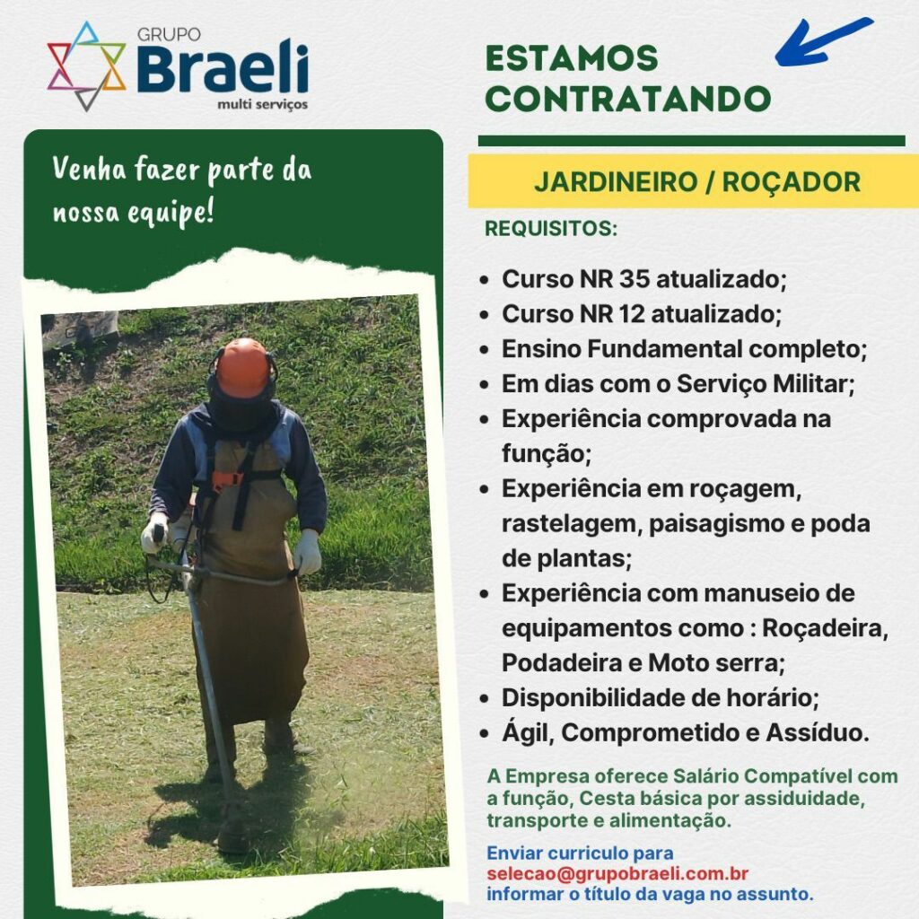 Rh está selecionando Jardineiro roçador; Envie seu currículo!