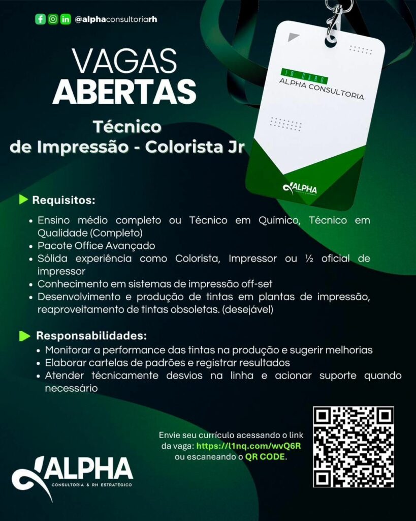 Rh está selecionando Técnico de impressão colorista jr; Envie seu currículo!