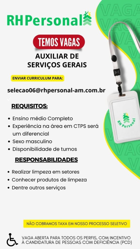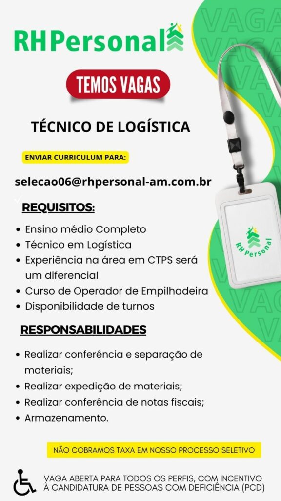 Rh está selecionando Técnico de logística, Auxiliar de serviços gerais; Envie seu currículo!