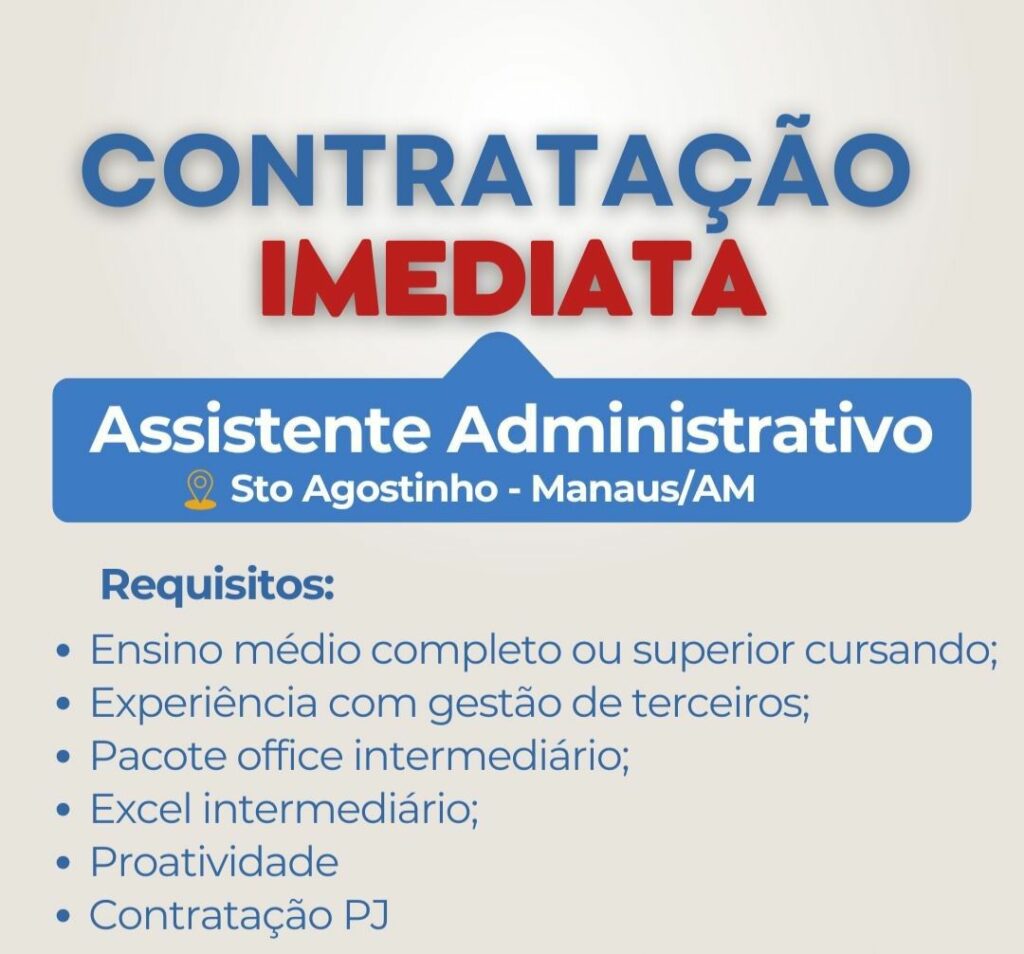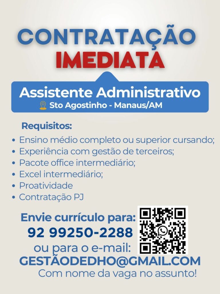 Seleção para contratação imediata Assistente administrativo; Envie seu currículo!