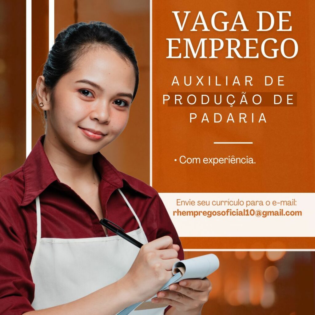 Seleção para seguintes vagas Auxiliar de produção padaria, Atendente de padaria, Auxiliar de serviços gerais, Operadora de caixa padaria, Salgadeiro de padaria; Envie seu currículo!