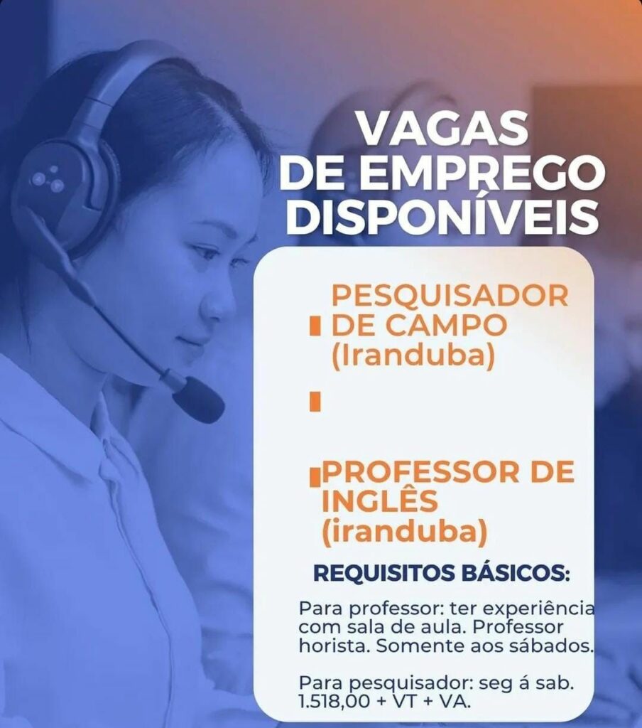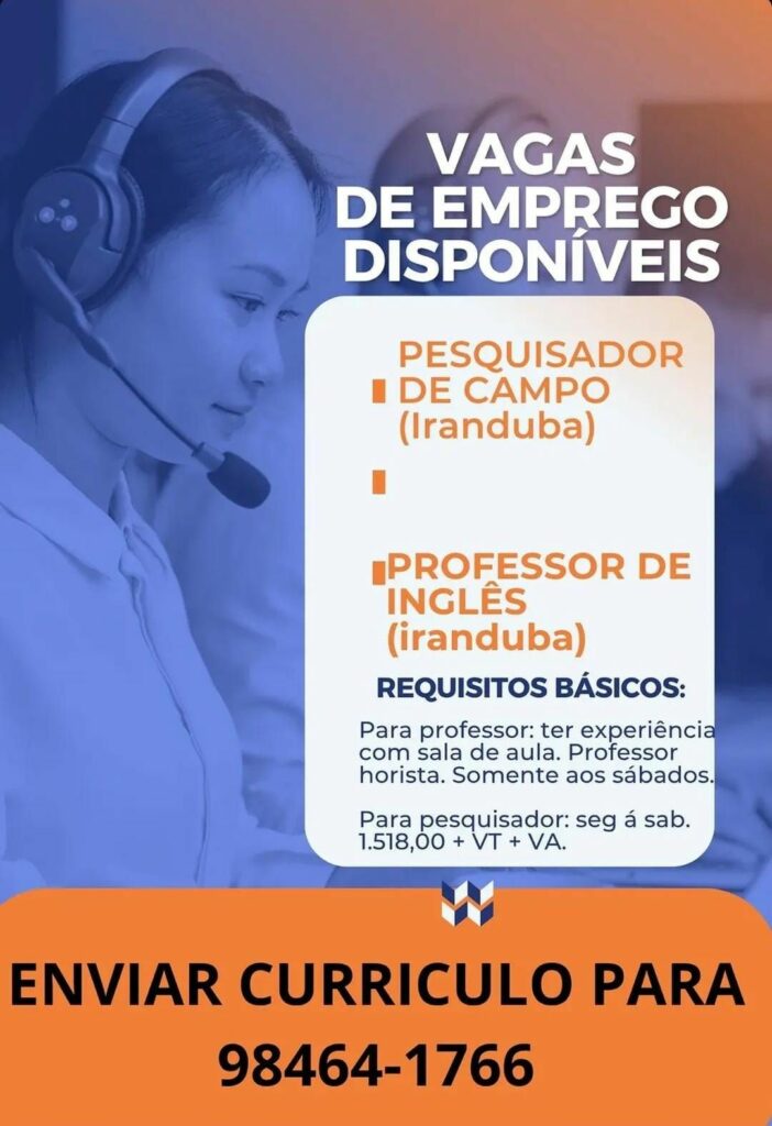 Seleção para seguintes vagas Pesquisador de campo, Professor de inglês; Envie seu currículo!