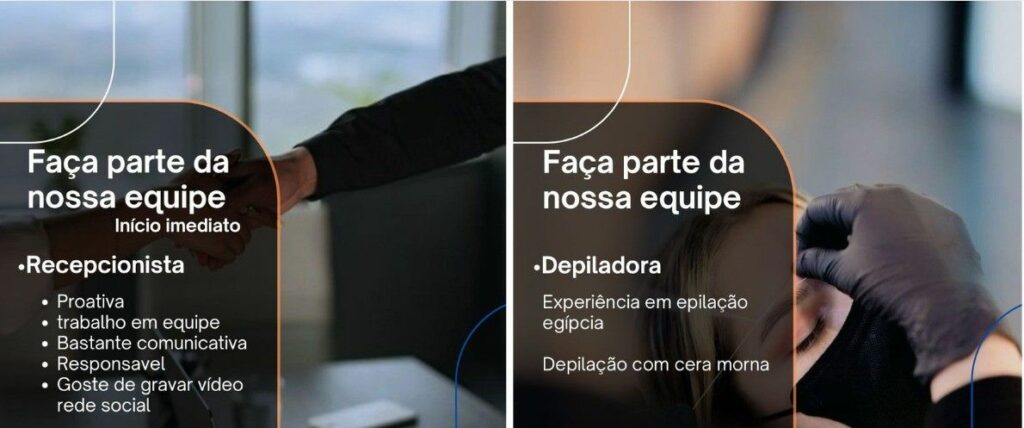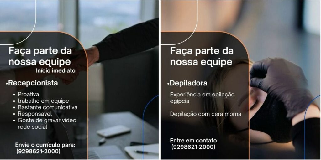 Seleção para seguintes vagas Recepcionista, Depiladora; Envie seu currículo!